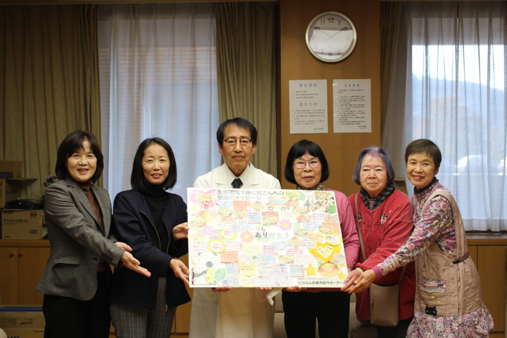 市民団体「にちなん医療市民サポーターズ」の皆様が来院され、医療従事者への感謝が込められたメッセージパネルをお持ちいただきました。